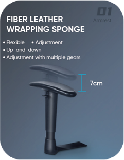 The 2D armrests come with a PU surface and can be adjusted 7cm in height, as well as rotated horizontally to suit your preferences. With a backrest that tilts from 90° to 175°, you can easily find the perfect angle for gaming or relaxation using the convenient adjuster located on the side of the chair.